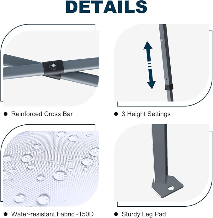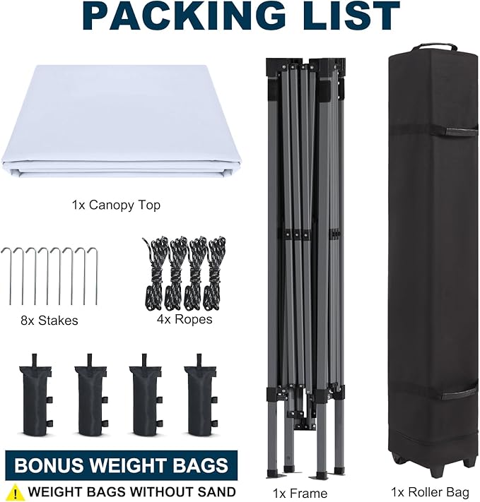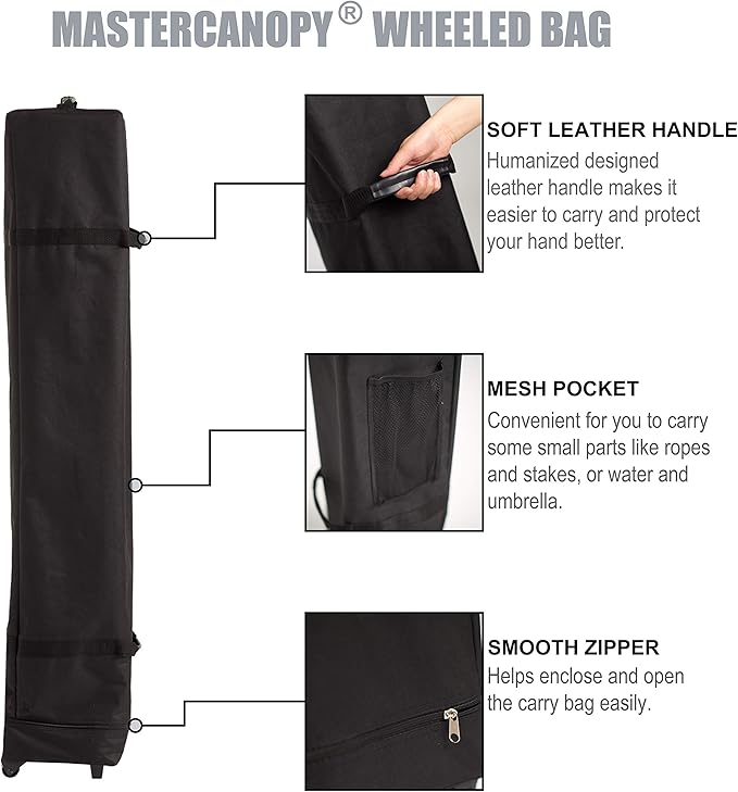 - Convenient and Portable: Designed of 2-section telescopic legs, which makes it convenient to adjust the height of the canopy,easily folded and packed into the wheeled bag, which makes it easier to carry and transport the canopy.