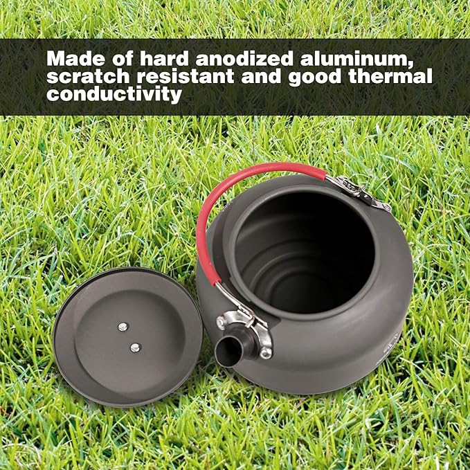 - High Quality: Made of hard anodized aluminum, which makes the camping kettle have higher scratch resistance and stability than ordinary alumina. Updated silicone-coated handle for great anti-hot effect