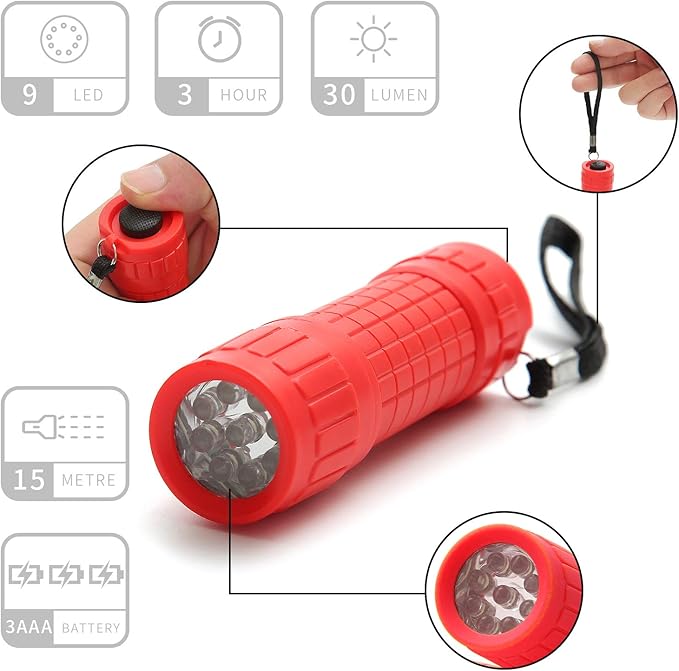 - 【BRIGHT】- The small flashlight has super bright 9-LED bulbs to make the light source brighter and illuminate longer distances. Easily find your way walking in the dark or reading your book at night.