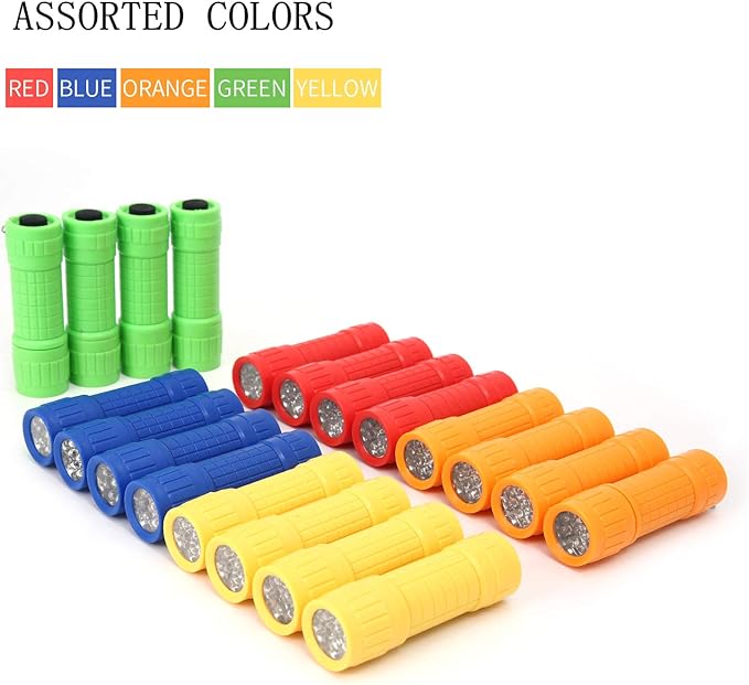 30-Pack Small Mini Flashlight Set, 5 Colors, 9-LED Handheld Flashlight with Lanyard,90-Pack AAA Battery Included for Kids/Night Reading/Party/Camping/Emergency/Hunting(30 Pack)
