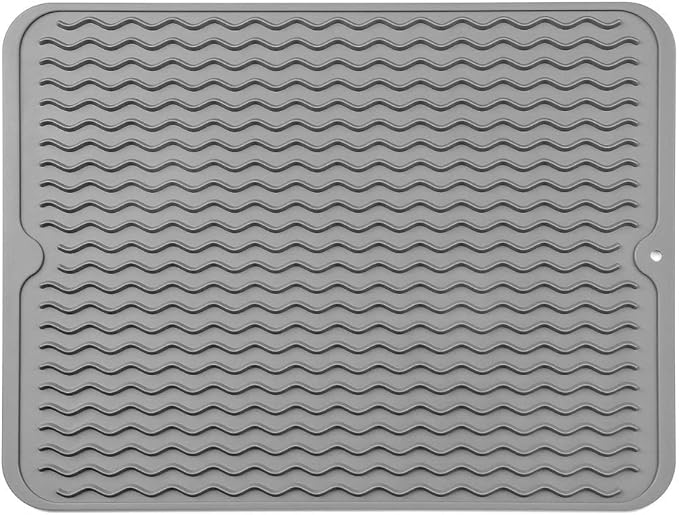 Silicone Dish Drying Mat for Multiple Usage,Easy clean,Eco-friendly,Heat-resistant Silicone Mat for Kitchen Counter or Sink,Refrigerator or drawer liner Grey L 16 inches x 12 inches