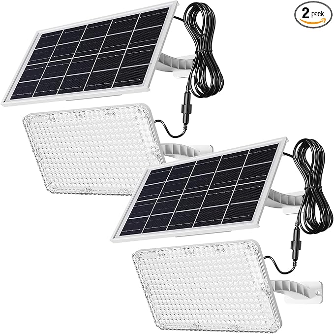 - 16.4ft Longer Extension Cord: JACKYLED dusk to dawn solar light has upgraded the cord length from 9.8ft to 16.4ft, allowing the solar panel to be installed in a longer distance where it absorbs more sunlight, like on the rooftop. With a longer cord, you can also select the light panel’s installation location from a wider range, whether outdoors or indoors. (Note: This solar flood light runs from dusk to dawn, it has no motion sensor)