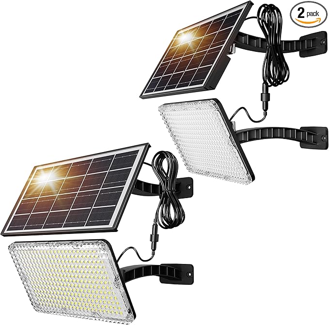 - 1000lm Brighter Light: As the number of LED units increases from 48 to 299, our upgraded solar outdoor lights is brighter than the old version, with 1000 lumen brightness, equivalent to a 100W incandescent bulb. The LED lamp panel can be adjusted left and right, up and down to customize the lighting direction as you like, covering a 120° area.