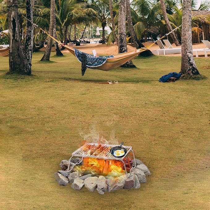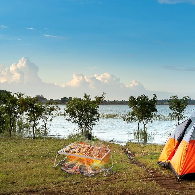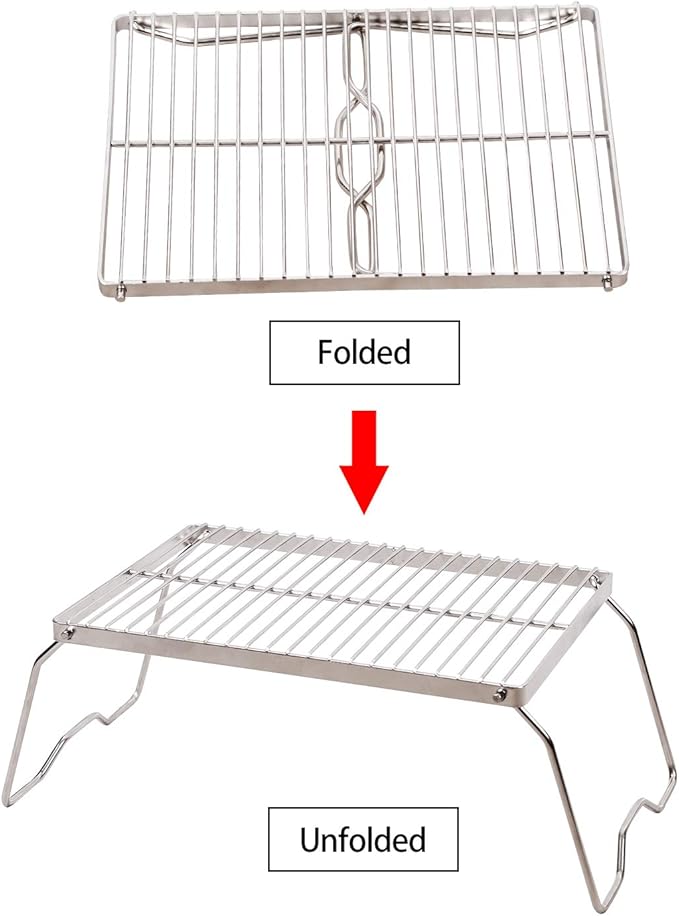 - USEFUL: Outdoor stainless steel folding campfire grill with carrying bag is an indispensable equipment for camping, backpacking, and trekking.