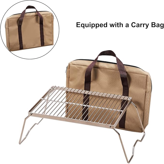 Campfire Grill 304 Stainless Steel Grate, Folding Camping Grill Heavy Duty with Carrying Bag, Medium