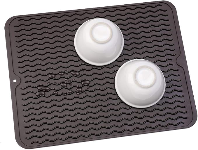 Silicone Dish Drying Mat for Multiple Usage,Easy clean,Eco-friendly,Heat-resistant Silicone Mat for Kitchen Counter or Sink,Refrigerator or drawer liner Coffee L 16 inches x 12 inches