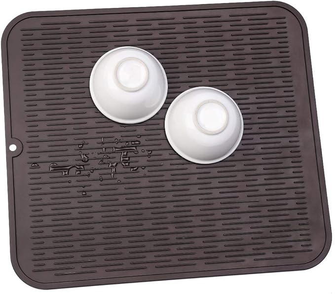 Silicone Dish Drying Mat for Multiple Usage,Easy clean,Eco-friendly,Heat-resistant Silicone Mat for Kitchen Counter or Sink,Refrigerator or Drawer Liner Coffee XL 18 inches x 16 inches