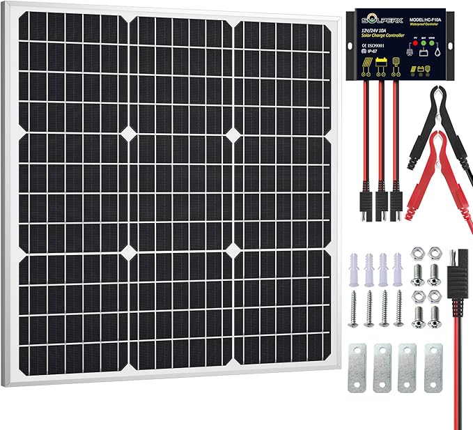 SOLPERK Solar Panel Kit 50W 12V, Solar Battery Trickle Charger Maintainer with Upgrade Waterproof Controller for Boat Car RV Motorcycle Marine Automotive (Without Mounting Bracket)