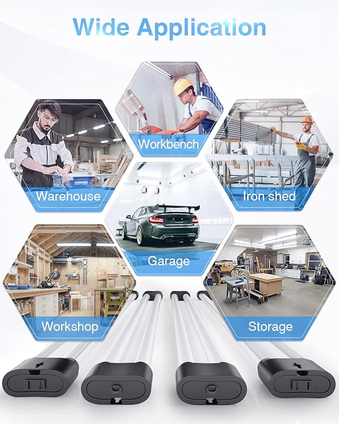 - đź’ˇ WIDE APPLICATION - Ideal for a variety of settings including garages, workshops, basements, and utility rooms, this versatile LED shop light meets all your lighting needs with exceptional performance and efficiency.