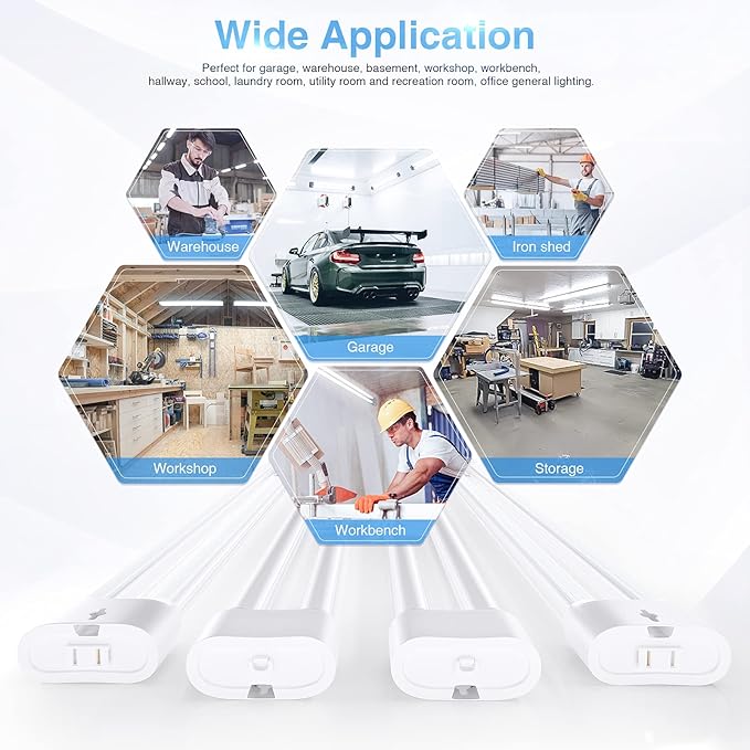 - 💡 WIDE APPLICATION - Ideal for a variety of settings including garages, workshops, basements, and utility rooms, this versatile LED shop light meets all your lighting needs with exceptional performance and efficiency.