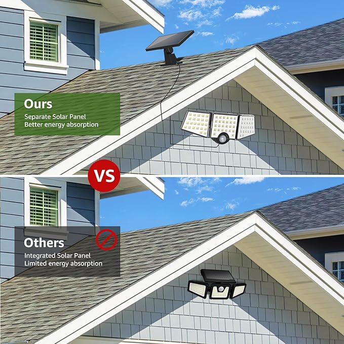 Lepro Solar Lights for Outside, WL5000 Motion Activated Security Lights, Separate Solar Panel, 3 Adjustable Head 270° Wide Lighting Angle, IP65 Waterproof Wall Lamp for Porch Yard Garage