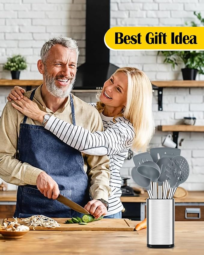 - Thoughtful Design : The good-quality 18/8 stainless steel keeps you away from the trouble of kitchen utensils rusting or breaking; This anti-scald silicone handle is not easy to conduct heat and is more comfortable to hold than traditional utensils