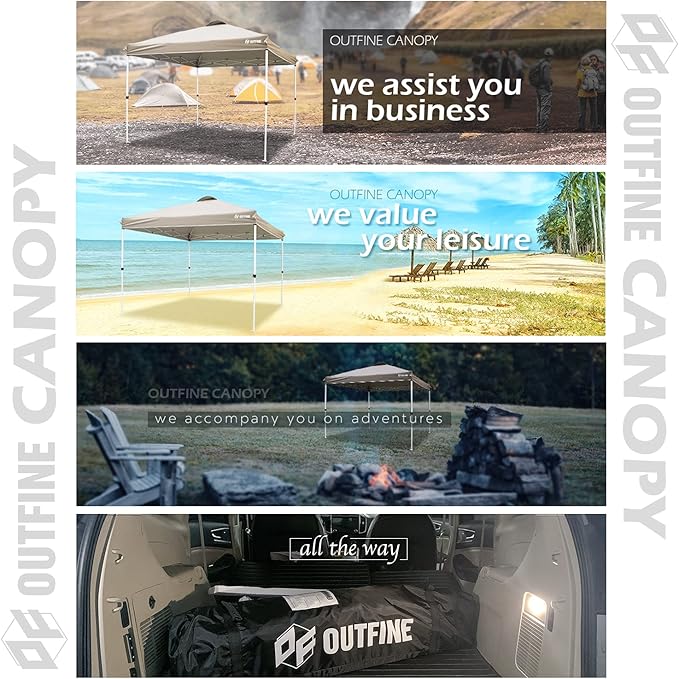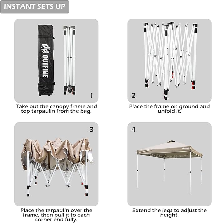 OUTFINE Pop-up Instant Gazebo Canopy 10x10 Patio Tent with Wheeled Bag,Canopy Sandbags x4,Tent Stakesx8 (Khaki, 10*10FT)