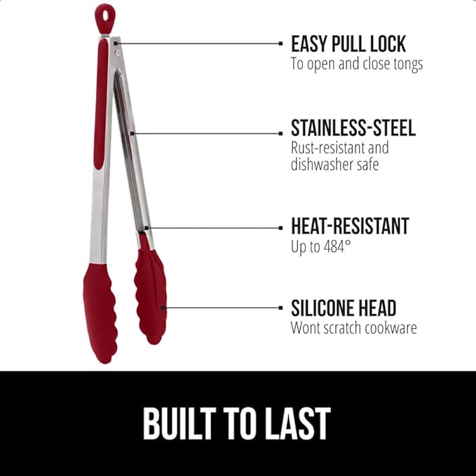 - SCRATCH RESISTANT SILICONE HEAD: featuring a silicone head, the tongs are gentle on your nonstick cookware so you can worry less about scratching and wear and tear; silicone is heat resistant up to 484 degrees Fahrenheit, making it a great option for nearly any cooking task