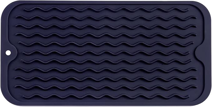 Silicone Dish Drying Mat for Multiple Usage,Easy clean,Eco-friendly,Heat-resistant Silicone Mat for Kitchen Counter or Sink,Refrigerator or Drawer Liner Navy Blue S 12 inches x 6 inches