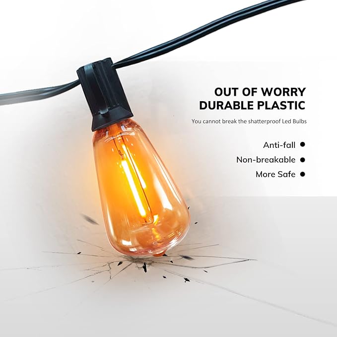 - Shatterproof & Waterproof Colorful String Lights - Achin edison string lights set with plastic shatterproof bulb, it will keep you away from safety hazards caused by broken glass. Multi-colored outdoor string lights waterproof can be used all year round.