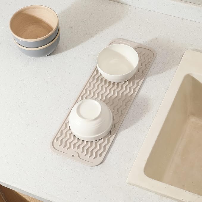 Silicone Dish Drying Mat for Multiple Usage,Easy clean,Eco-friendly,Heat-resistant Silicone Mat for Kitchen Counter,Sink,Bar,Bottle,or Cup Tapioca M 17 inches x 6 inches