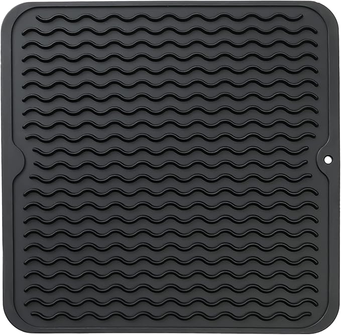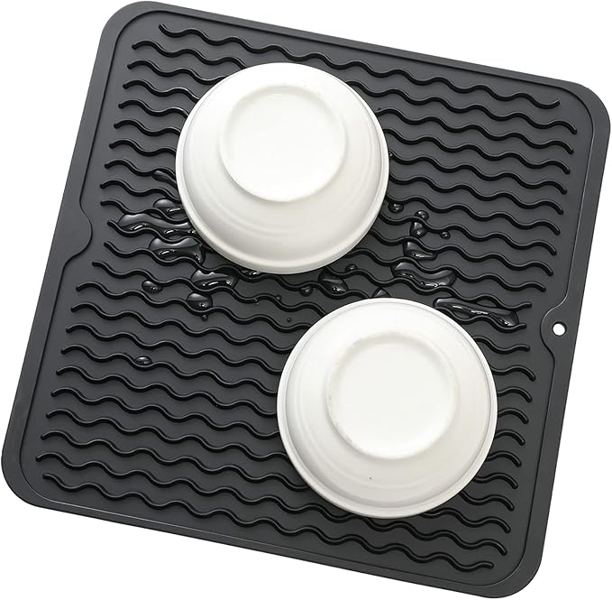 Silicone Dish Drying Mat for Multiple Usage,Easy clean,Eco-friendly,Heat-resistant Silicone Mat for Kitchen Counter or Sink,Refrigerator or Drawer liner Black M 12 inches x 12 inches