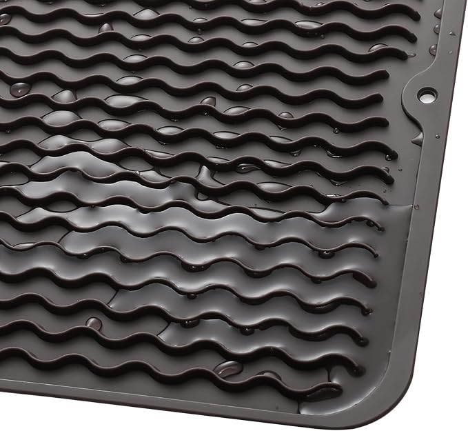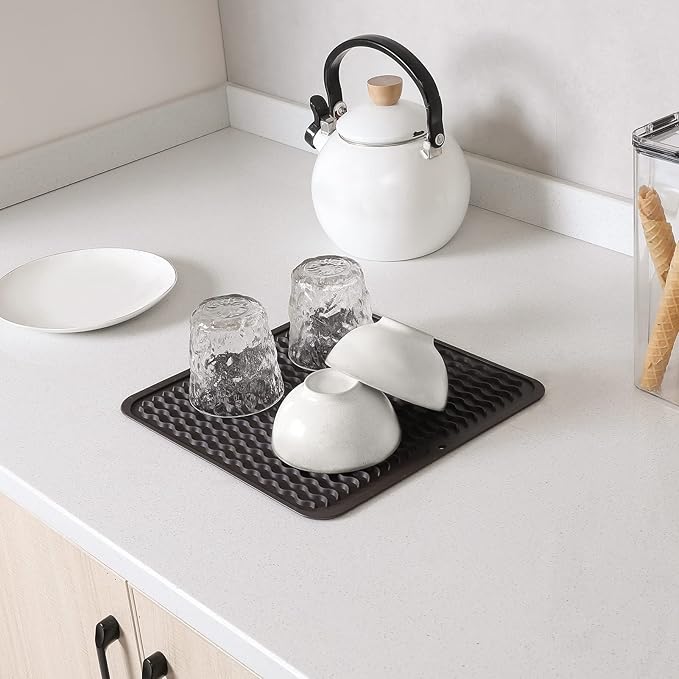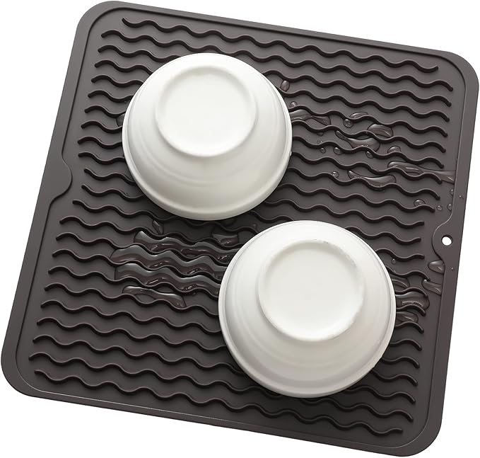 Silicone Dish Drying Mat for Multiple Usage,Easy clean,Eco-friendly,Heat-resistant Silicone Mat for Kitchen Counter or Sink,Refrigerator or Drawer liner Coffee M 12 inches x 12 inches