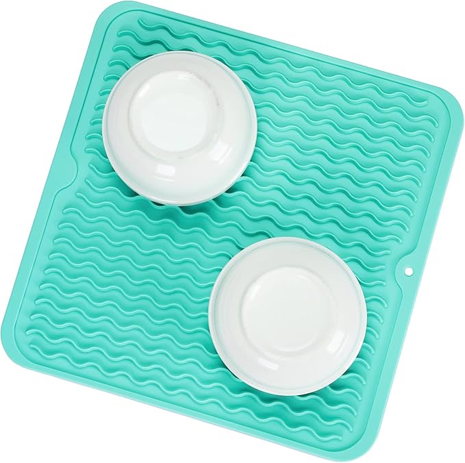 Silicone Dish Drying Mat for Multiple Usage,Easy clean,Eco-friendly,Heat-resistant Silicone Mat for Kitchen Counter or Sink,Refrigerator or Drawer liner Mint M 12 inches x 12 inches