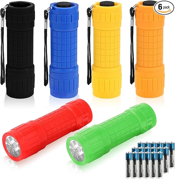 6-Pack Small Mini Flashlight Set, 9-LED Handheld Flashlight with Lanyard,18-Pack AAA Battery Included for Kids/Night Reading/Party/Camping/Emergency/Hunting (6 Pack)