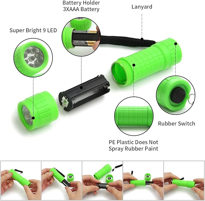 - 【EASY TO USE】- Every one worked perfectly - easy to load with batteries.The non-slip case design and lanyard are Easy for small hands to grip and the and Simple push button operation makes them easy ON/OFF.