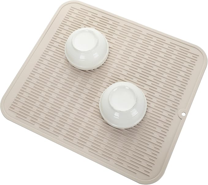 Silicone Dish Drying Mat for Multiple Usage,Easy clean,Eco-friendly,Heat-resistant Silicone Mat for Kitchen Counter or Sink,Refrigerator or Drawer Liner Tapioca 2XL 24 inches x 18 inches