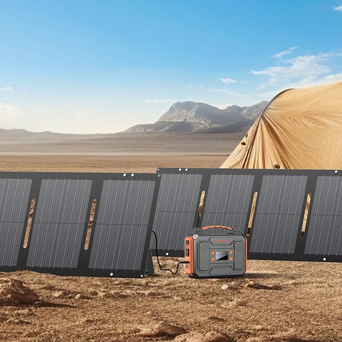 - 🌍FOLDABLE & KICKSTAND DESIGN: The 60W solar panel only weighs 4.2lb( 1.9KG), Folded size only 14.96x 9.78 x 0.77in, portable solar panel 60W is great for traveling off the beaten path without access to electricity and won't take up much space in your car,compatible with most portable power station in the market