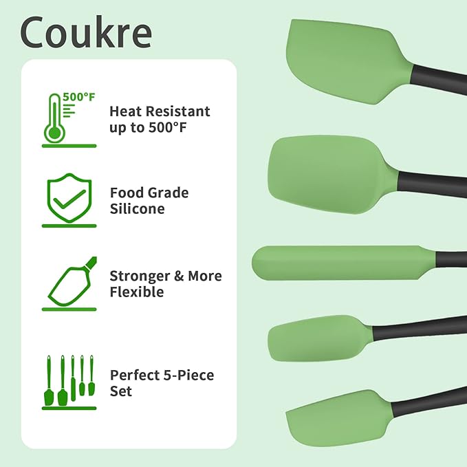 Coukre Silicone Spatula Set of 5,High Temperature Resistant, Food Grade Silicone, Dishwasher Safe, for Baking, Cooking (5, Grass Green)