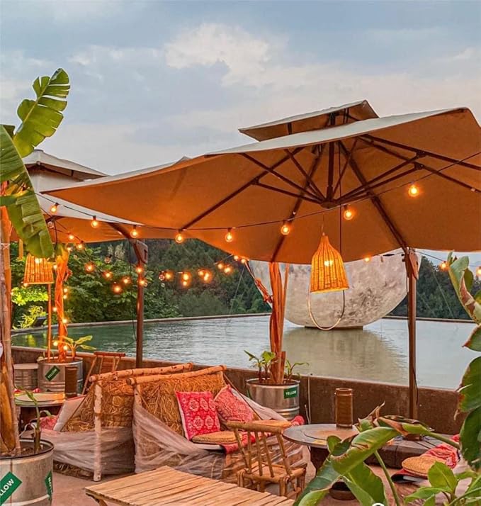- 【CONNECTABLE & DIMMABLE BISTRO LIGHTS】: 240FT waterproof outdoor lights for patio can be connected up to 7 extra long strings by the end-to-end connector. Bistro lights are compactable with plugin dimmers(not included), the best ambiance string lights for exterior, outdoor, gazebo, backyard, pergola.
