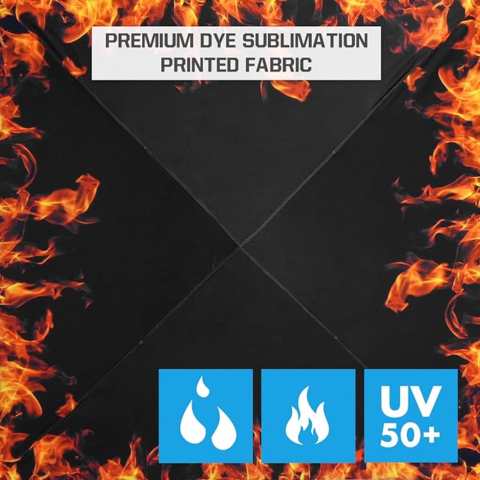 - SUPERIOR QUALITY: UPF 50+ UV protection, water resistance, CPAI-84 flame resistance, 150D oxford fabric canopy top. Frame is powder-coated, rust-resistant, high-grade engineered steel, with hardened M5 bolts and nylon connection hardware for maximum durability