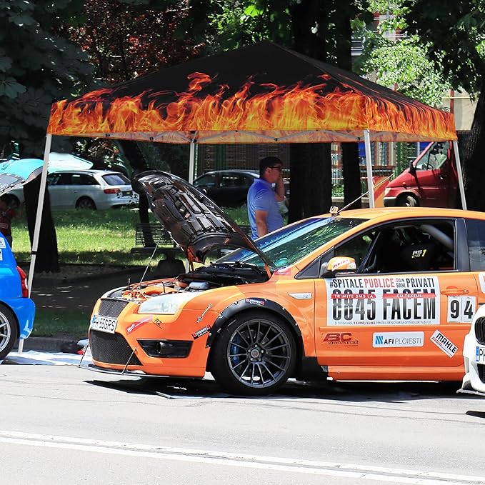 EAGLE PEAK 10x10 Slant Leg Pop-up Canopy Tent Easy One Person Setup Instant Outdoor Beach Canopy Folding Portable Sports Shelter 10x10 Base 8x8 Top (Flame)