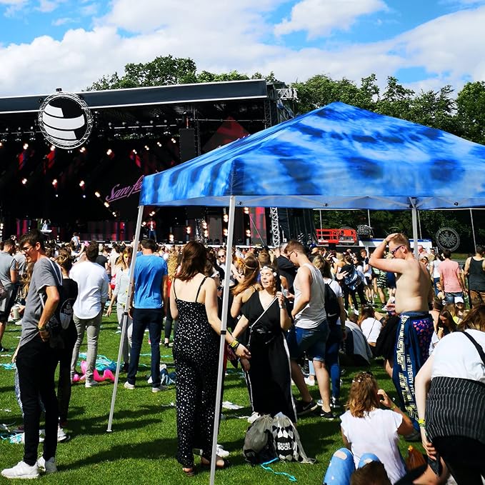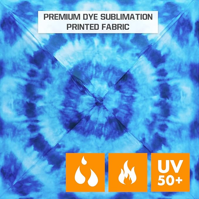 EAGLE PEAK 10x10 Slant Leg Pop-up Canopy Tent Easy One Person Setup Instant Outdoor Beach Canopy Folding Portable Sports Shelter 10x10 Base 8x8 Top (Tie Dye Blue)