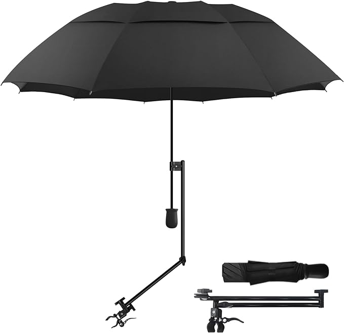 - 👍 High-Quality Materials - The Adjustable Universal Clamp is made of low-carbon steel, which is strong, stable, lightweight, flexible, and easy to carry. The rib of the golf umbrella is made of steel, the umbrella is in the shape of a 10-rib kite, light and flexible, The umbrella surface is made of high-density polyester fiber waterproof, forming a non-absorbent lotus leaf effect.