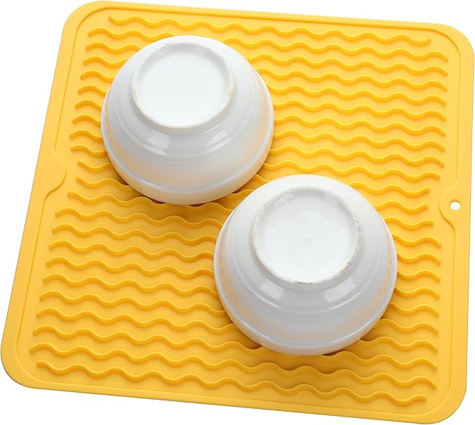 Silicone Dish Drying Mat for Multiple Usage,Easy clean,Eco-friendly,Heat-resistant Silicone Mat for Kitchen Counter or Sink,Refrigerator or Drawer liner Yellow M 12 inches x 12 inches
