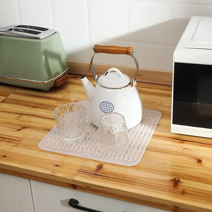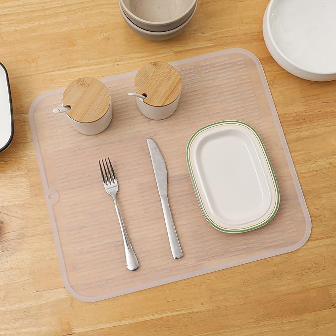 Silicone Dish Drying Mat for Multiple Usage,Easy clean,Eco-friendly,Heat-resistant Silicone Mat for Kitchen Counter or Sink,Refrigerator or Drawer Liner Translucent XL 18 inches x 16 inches