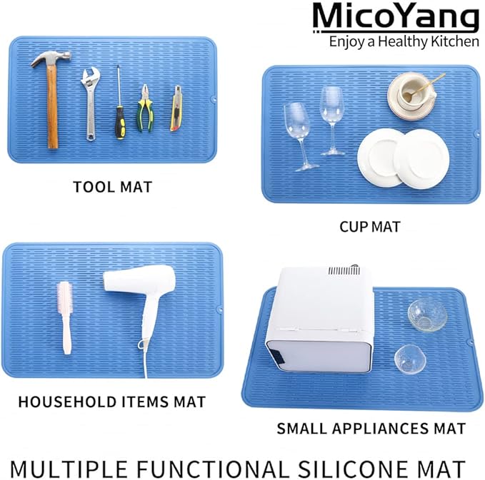 Silicone Dish Drying Mat for Multiple Usage,Easy clean,Eco-friendly,Heat-resistant Silicone Mat for Kitchen Counter or Sink,Refrigerator or Drawer Liner Lichen BlueL 3XL 28 inches x 18 inches