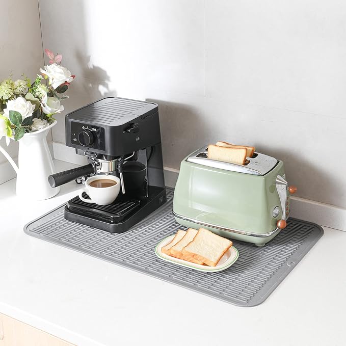 Silicone Dish Drying Mat for Multiple Usage,Easy clean,Eco-friendly,Heat-resistant Silicone Mat for Kitchen Counter or Sink,Refrigerator or Drawer Liner Grey 3XL 28 inches x 18 inches