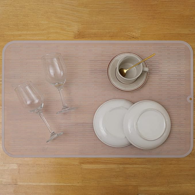 Silicone Dish Drying Mat for Multiple Usage,Easy clean,Eco-friendly,Heat-resistant Silicone Mat for Kitchen Counter or Sink,Refrigerator or Drawer Liner Translucent 3XL 28 inches x 18 inches