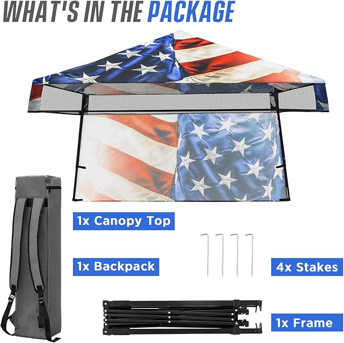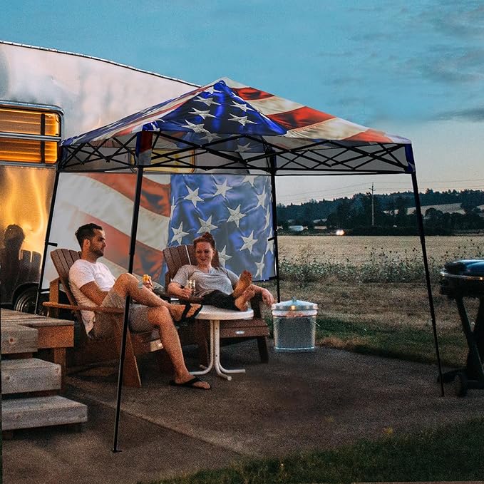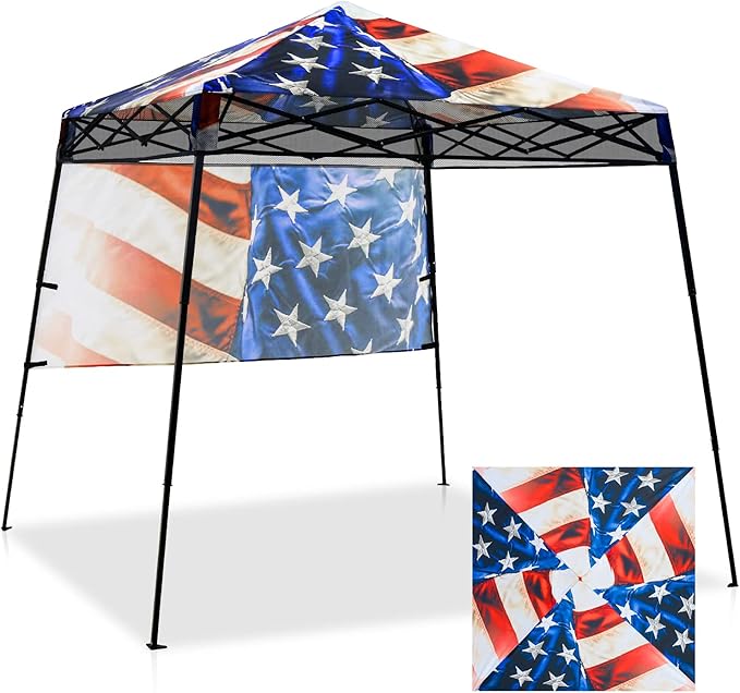 EAGLE PEAK 8x8 Pop Up Canopy Tent with Sidewall, Compact, Portable Slant Leg Instant Sun Shelter for Beach, Sports, & Camping, 8x8 Base 6x6 Top, Stars and Stripes