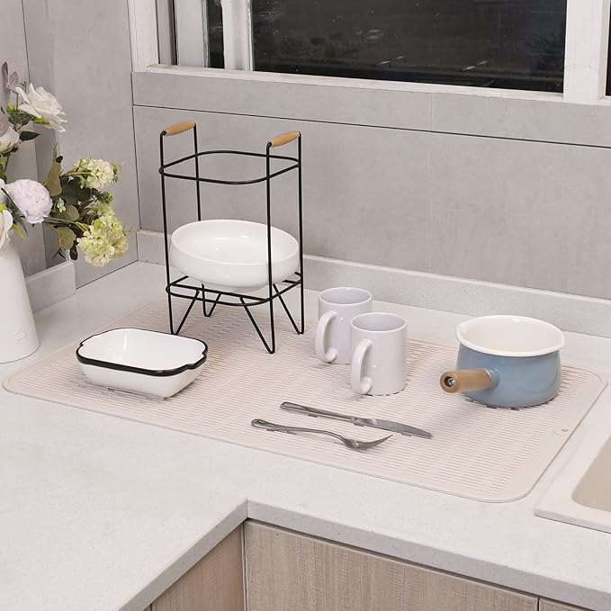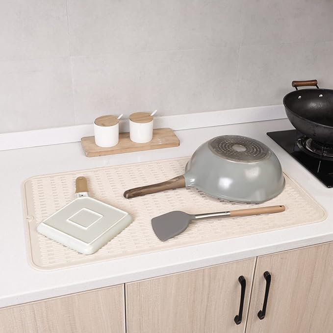Silicone Dish Drying Mat for Multiple Usage,Easy clean,Eco-friendly,Heat-resistant Silicone Mat for Kitchen Counter or Sink,Refrigerator or Drawer Liner Tapioca 4XL 32 inches x 18 inches