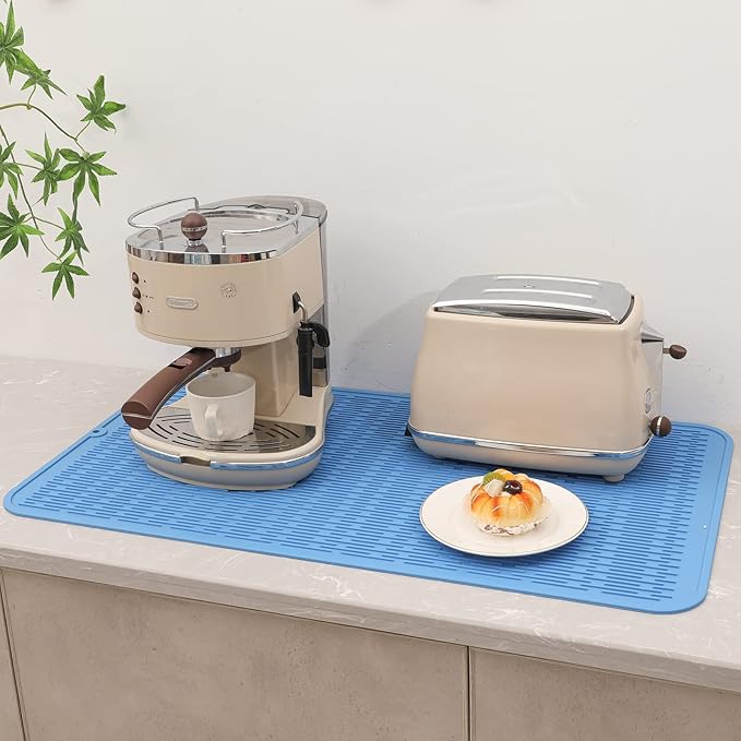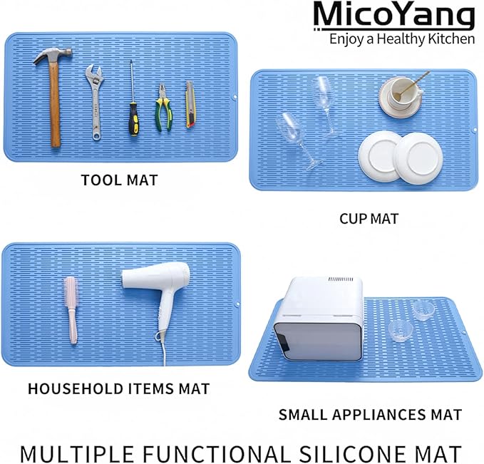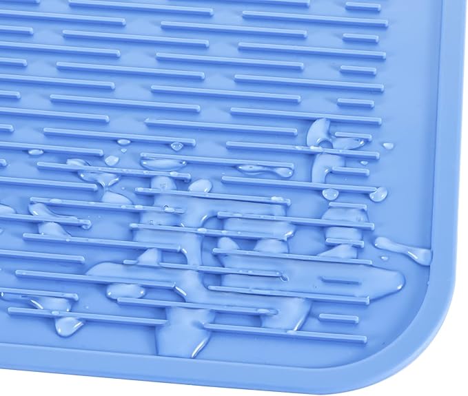 Silicone Dish Drying Mat for Multiple Usage,Easy clean,Eco-friendly,Heat-resistant Silicone Mat for Kitchen Counter or Sink,Refrigerator or Drawer Liner Lichen BlueL 4XL 32 inches x 18 inches