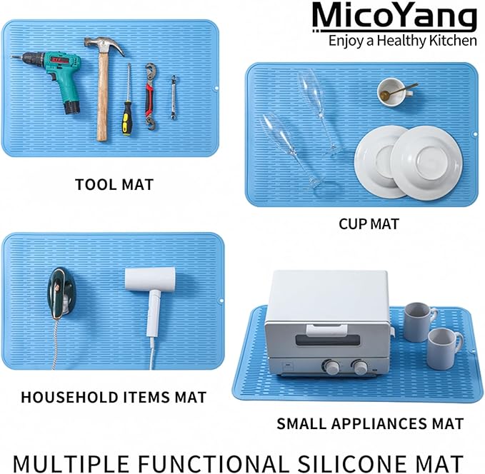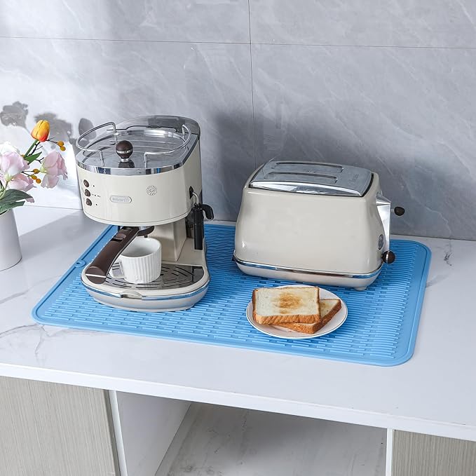 Silicone Dish Drying Mat for Multiple Usage,Easy clean,Eco-friendly,Heat-resistant Silicone Mat for Kitchen Counter or Sink,Refrigerator or Drawer Liner Light Blue 4XL 32 inches x 18 inches
