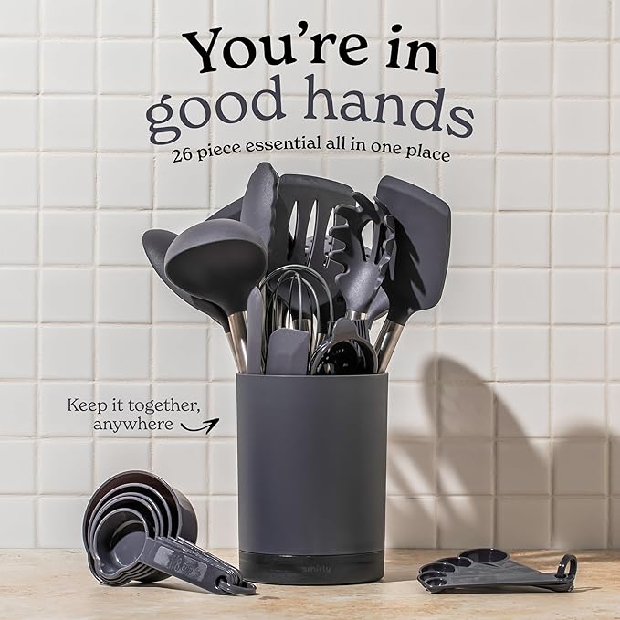SMIRLY Kitchen Utensils Set – 26-Piece Silicone Cooking Utensils Set, Spatula Set with Holder, Stainless Steel Handle Silicone Kitchen Gadgets for Nonstick Cookware