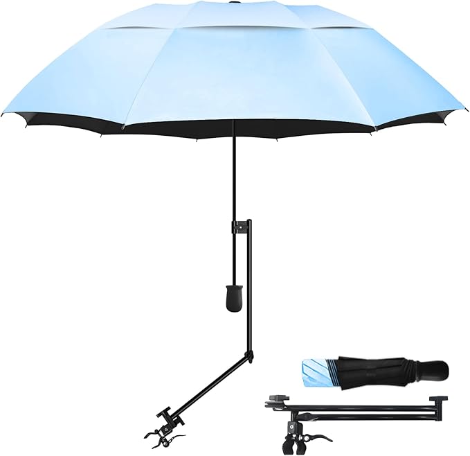 - ✔ Adjustable Clip and Tilt Arm - The multi-angle sloping design gives you convenience for maximum sun protection, and you can enjoy the cool shade from sunrise to sunset. Adjustable Clips can be installed vertically or horizontally, for Chair, Golf carts, Stroller, Bleachers