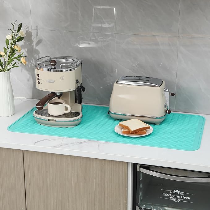 Silicone Dish Drying Mat for Multiple Usage,Easy clean,Eco-friendly,Heat-resistant Silicone Mat for Kitchen Counter or Sink,Refrigerator or Drawer Liner Mint 5XL 36inches x 18inches