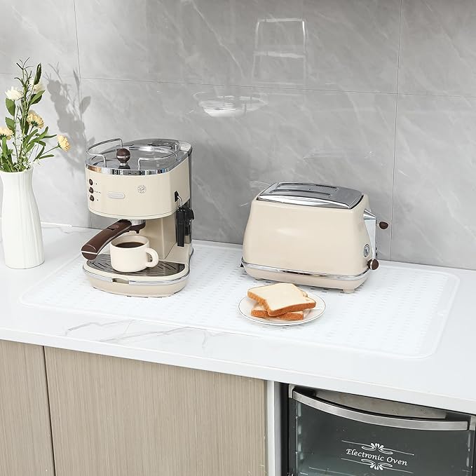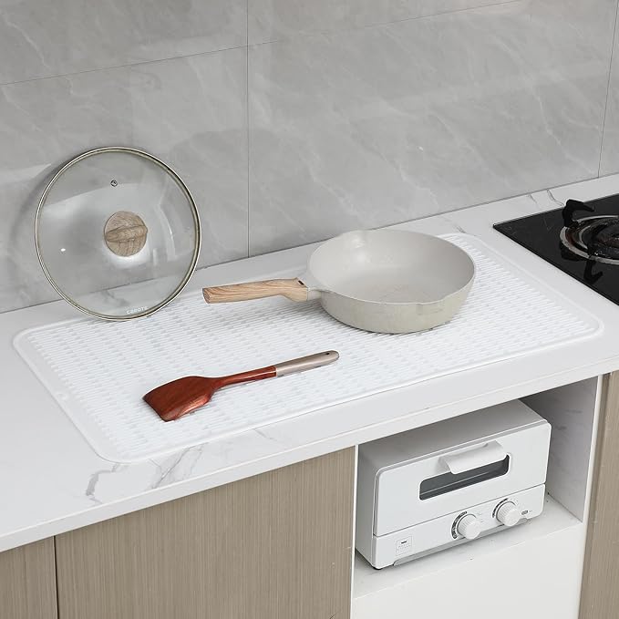 Silicone Dish Drying Mat for Multiple Usage,Easy clean,Eco-friendly,Heat-resistant Silicone Mat for Kitchen Counter or Sink,Refrigerator or Drawer Liner White 5XL 36inches x 18inches