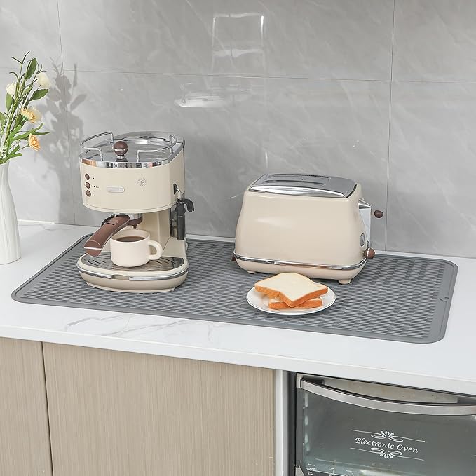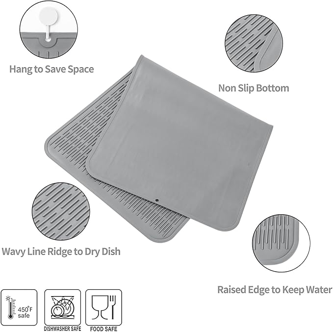 Silicone Dish Drying Mat for Multiple Usage,Easy clean,Eco-friendly,Heat-resistant Silicone Mat for Kitchen Counter or Sink,Refrigerator or Drawer Liner Grey 5XL 36inches x 18inches