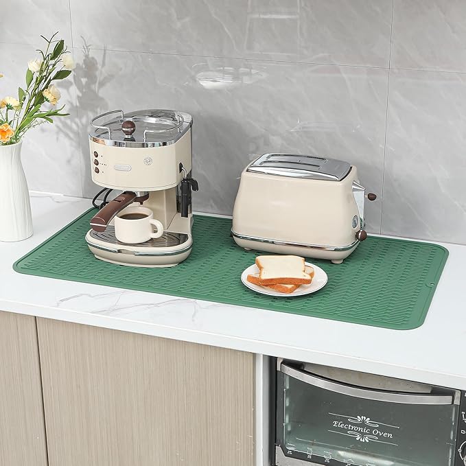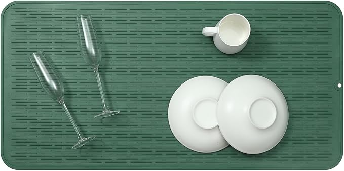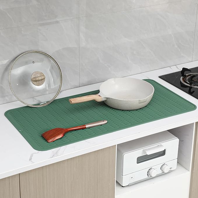Silicone Dish Drying Mat for Multiple Usage,Easy clean,Eco-friendly,Heat-resistant Silicone Mat for Kitchen Counter or Sink,Refrigerator or Drawer Liner Green 5XL 36inches x 18inches