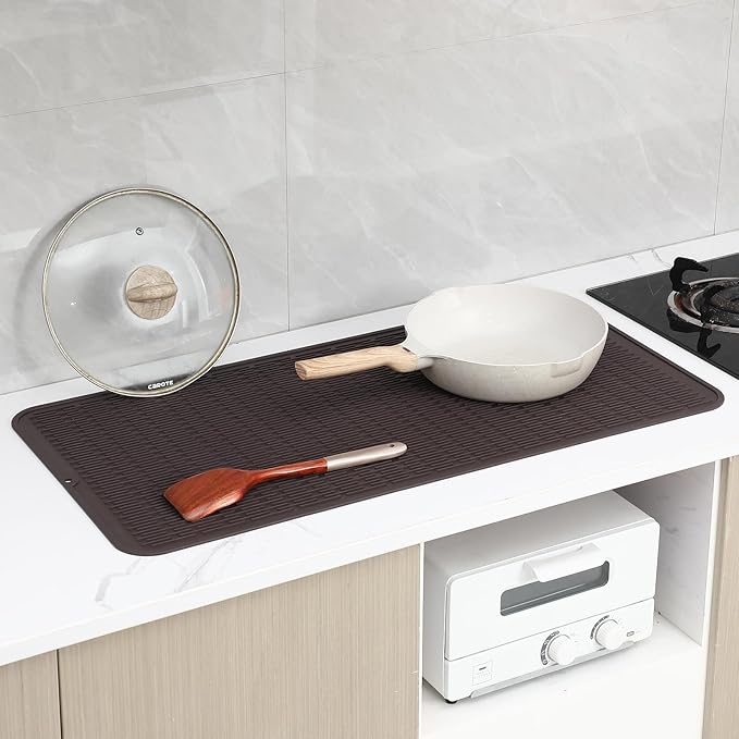Silicone Dish Drying Mat for Multiple Usage,Easy clean,Eco-friendly,Heat-resistant Silicone Mat for Kitchen Counter or Sink,Refrigerator or Drawer Liner Coffee 5XL 36inches x 18inches